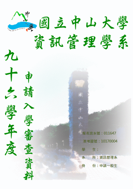這兩天都在研究著要如何選擇填入個人申請五個志願裡的校系,資管的目標似乎有點距離,但是我想我還是會試試看,畢竟現在也不過是第一個機會而已,或許就像學測分數一般的深不可測吧?人生有許多事情都是非常的奇妙的,希望我可以順利的通過第一階段的篩選並期望有機會並順利的通過志願校系的第二階段考察。